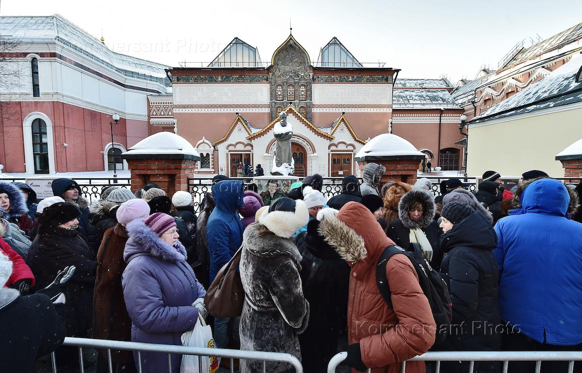 Очередь за именными билетами на выставку "Roma Aeterna. Шедевры Пинакотеки Ватикана" в Третьяковской галерее.