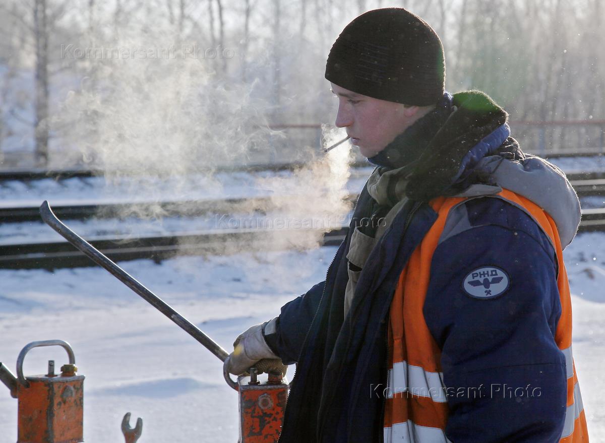 Жанровая фотография. Путевые работы. Укладка основного пути Пушкино - Мытищи в районе поселка Тарасовка.