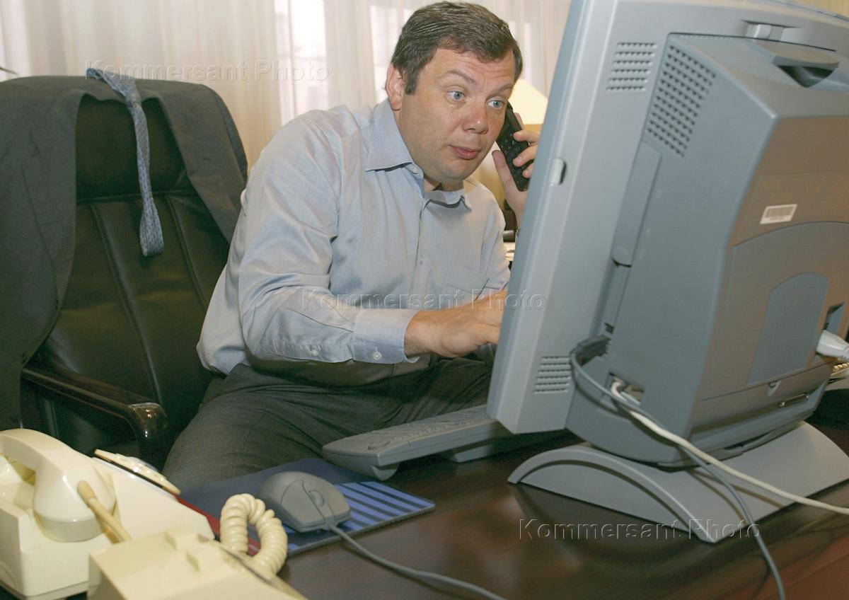 Vice-president of the "Alfa-bank" Alexander Gafin is interviewed in his cabinet.