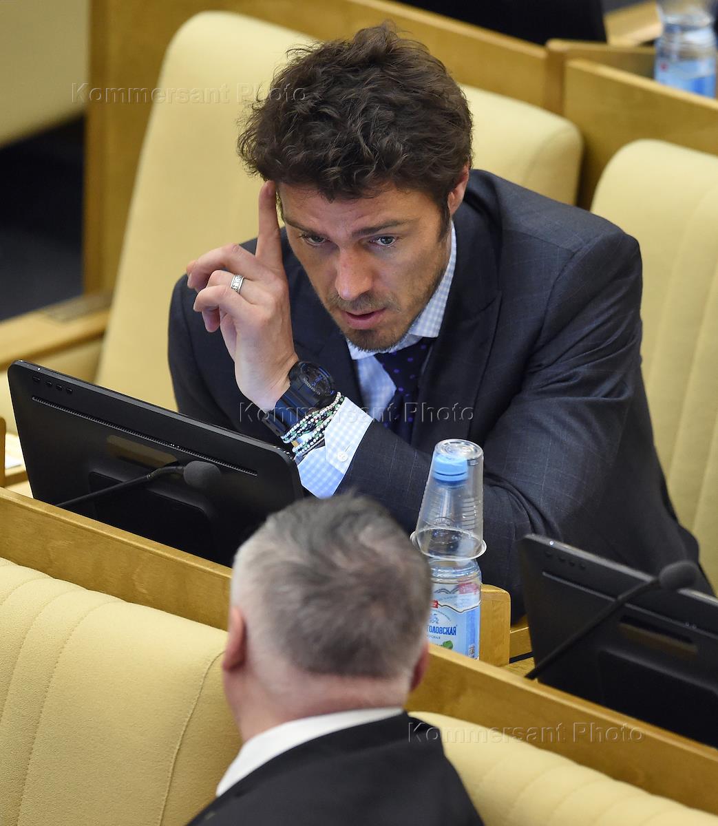 Пленарное заседание Государственной думы (ГД) России. член комитета ГД России по физической культуре, спорту, туризму и делам молодежи Марат Сафин (слева) во время заседания.