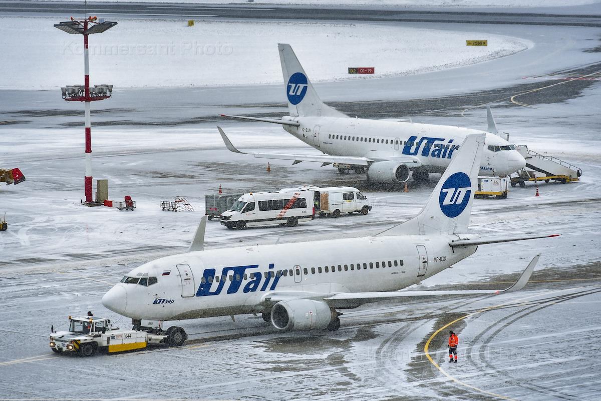 Самолеты "Боинг" авиакомпании "ЮТэйр" во время последней — противобледенительной обработки перед полетом, в аэропорту Внуково.