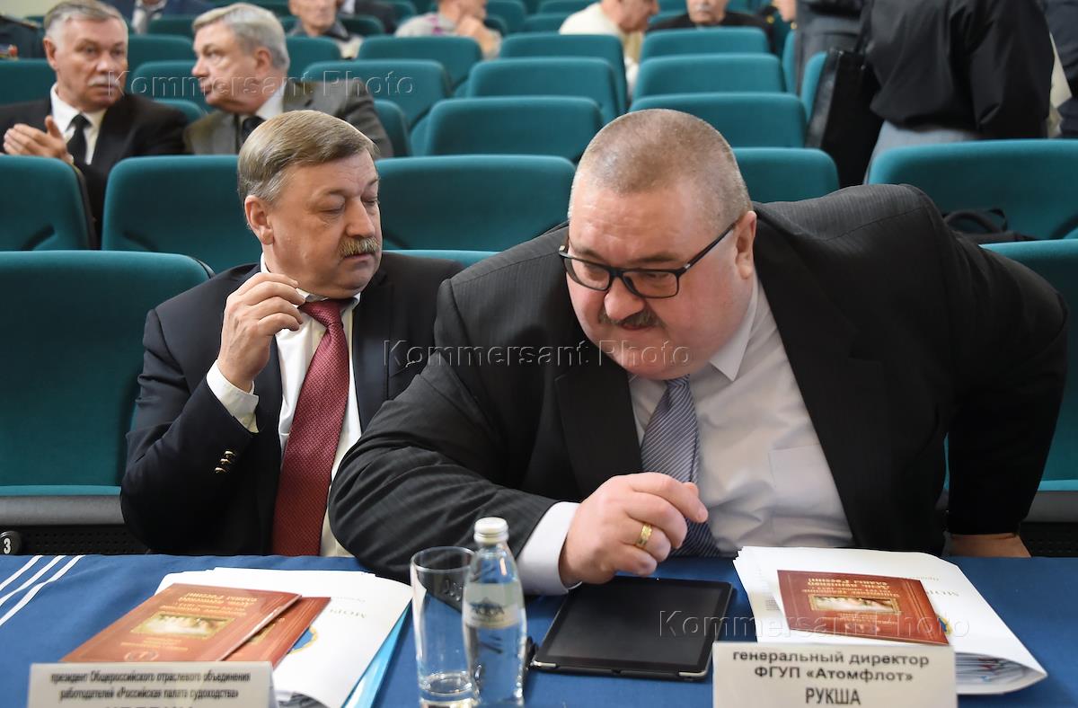 Заседание Морской коллегии при Правительстве России. Генеральный директор ФГУП Атомфлота" Вячеслав Рукша (слева) во время заседания.