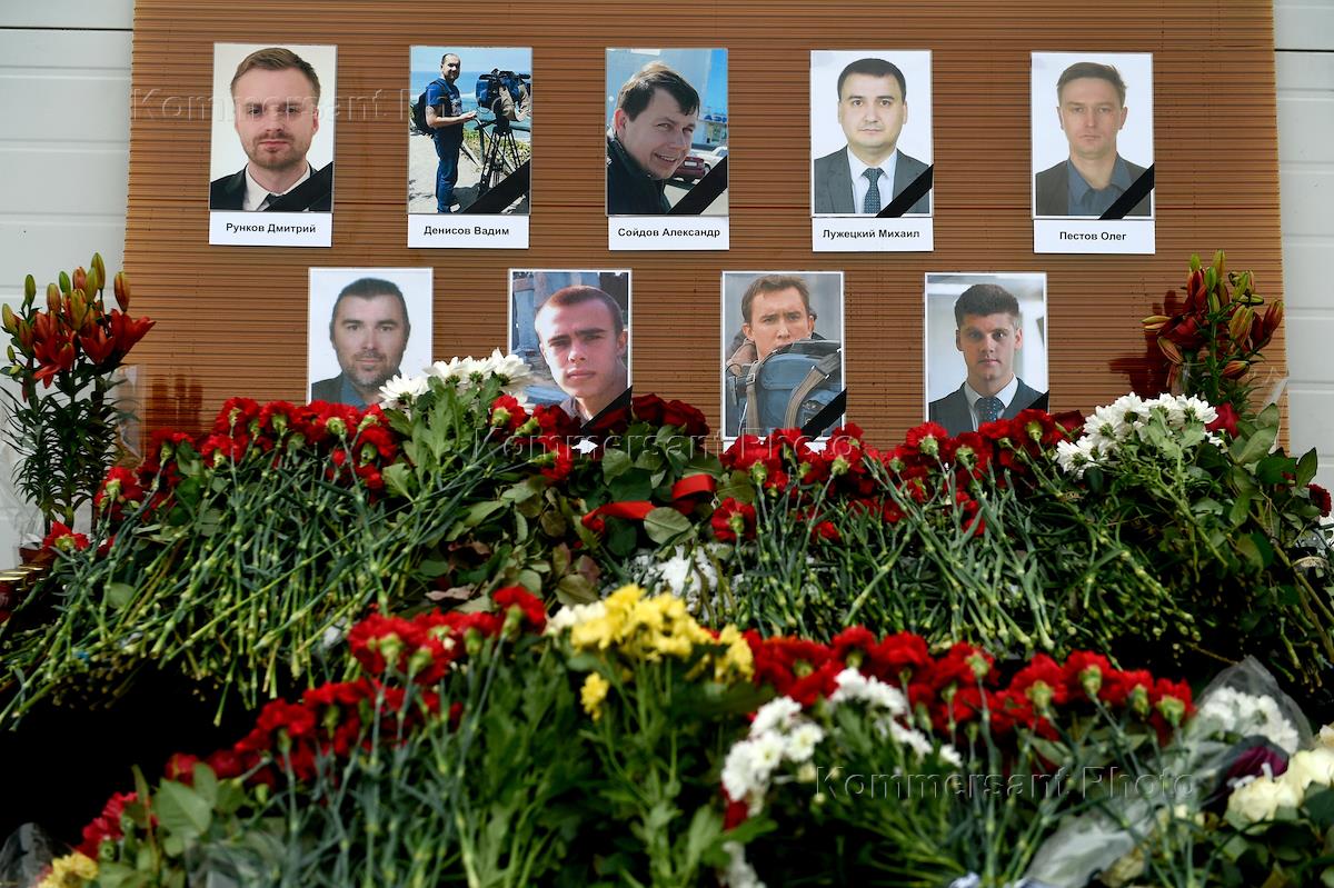 Траурные мероприятия у телецентра "Останкино" по погибшим в авиакатастрофе самолета Министерства обороны России Ту-154, на борту которого находились журналисты НТВ, Первого канала и ТК "Звезда". Самолет, летевший в Сирию, потерпел крушение у побережья Черного моря в Сочи.