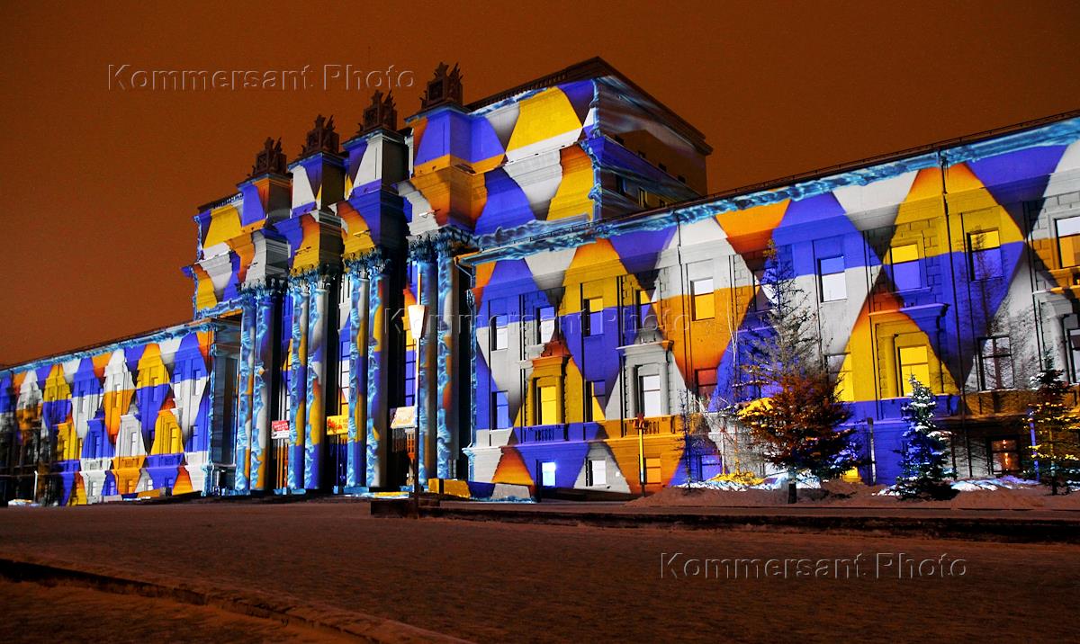Виды Самары. Проекционное световое новогоднее шоу на фасаде Самарского академического театра оперы и балета на площади Куйбышева.