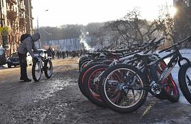 Второй зимний Московский велопарад, посвященный поддержке развития велосипедной инфраструктуры и безопасности на дорогах. Участники велопарад проехали от улицы 3-я Фрунзенская по набережным Москвы-реки до Кремля и обратно.