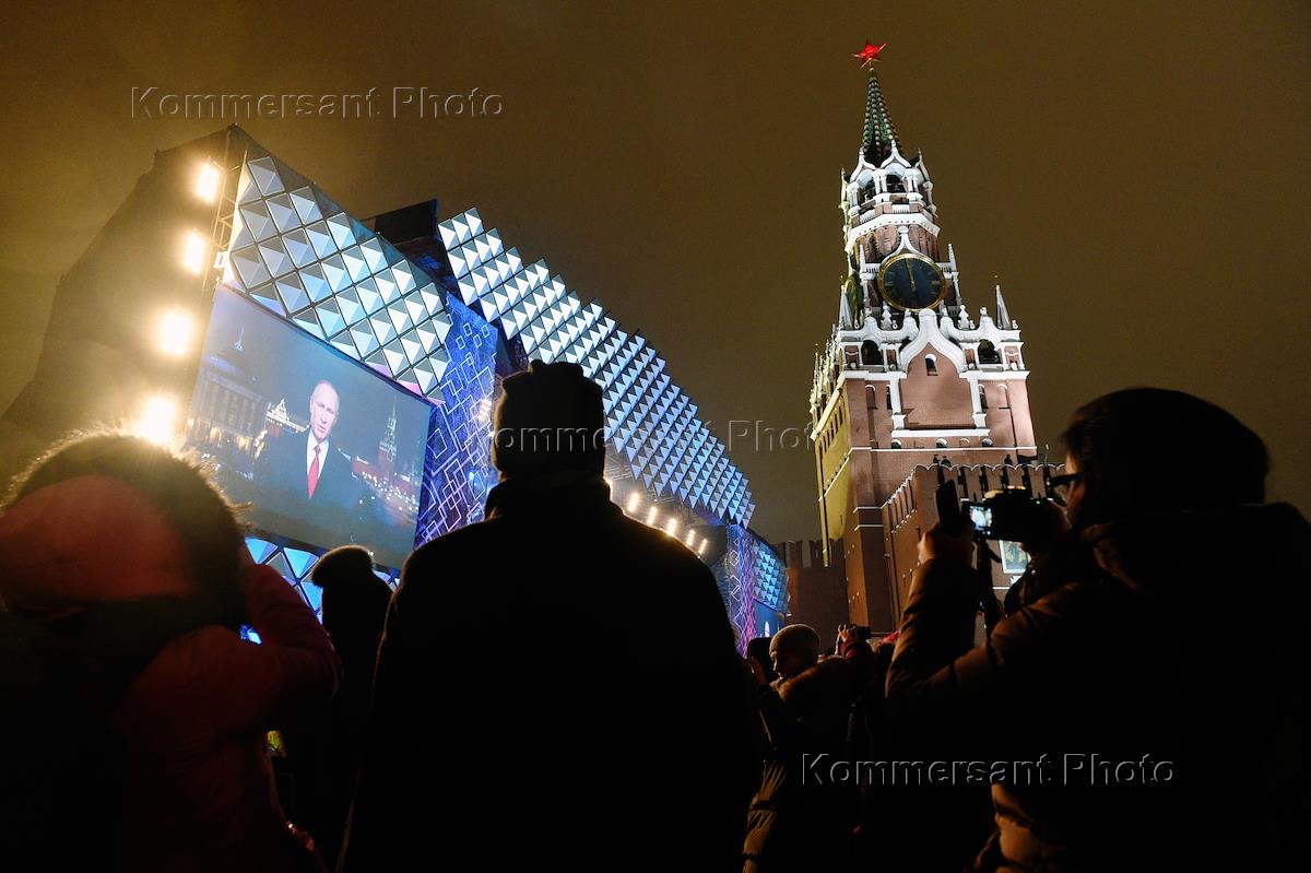 Празднование нового года в центре Москвы. Новогодние гуляния на Красной площади.