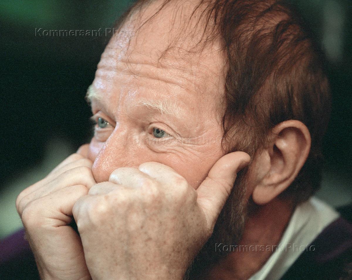 Актер Альберт Филозов на открытии фонтана на даче у актера Льва Дурова в садовом кооперативе "Актер" в Сергиевом Посаде.