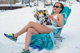 Жанровая фотография. Зимний отдых жителей Новосибирска. Девушка загорает на солнце.