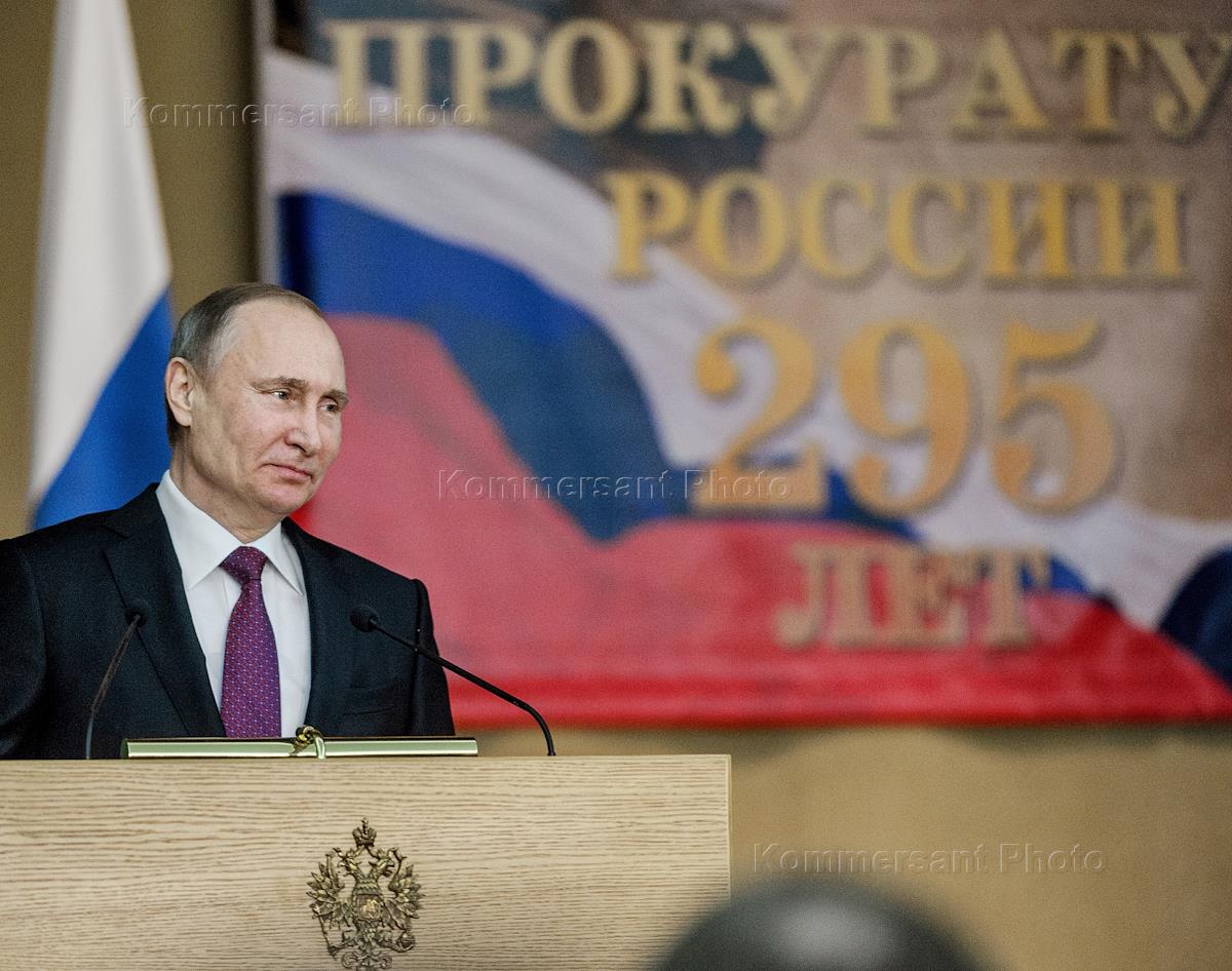 Президент России Владимир Путин во время торжественного заседания, посвященного 295-летию Российской прокуратуры.