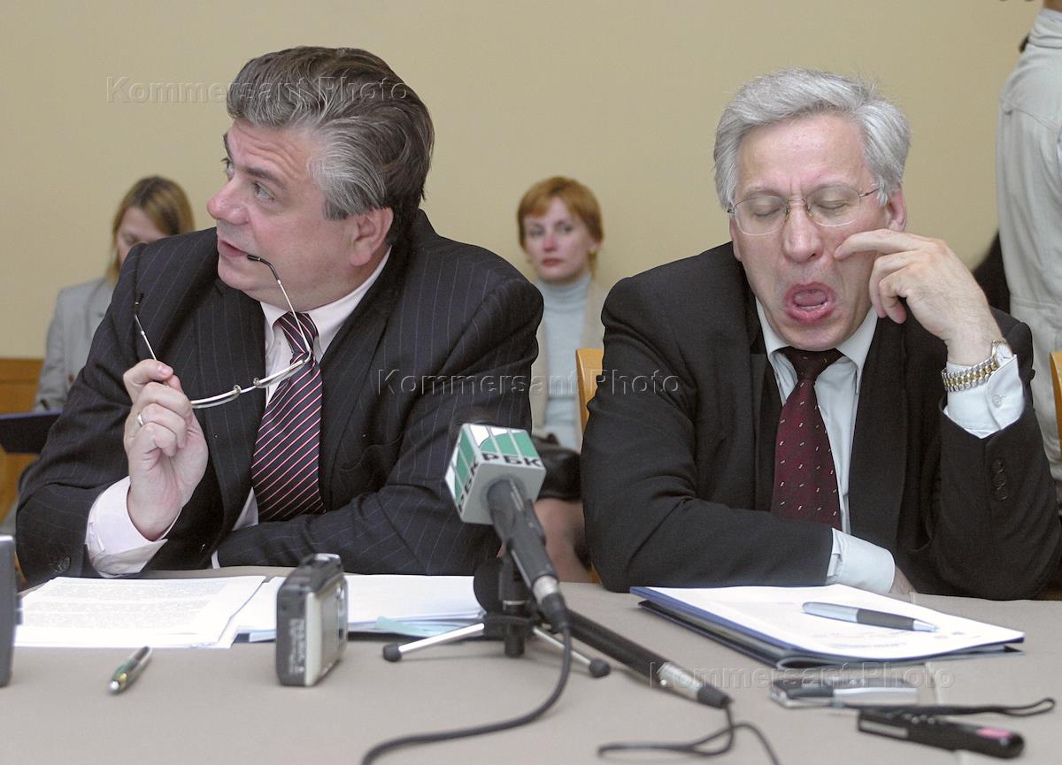 Alexander Khandruev, First Vice President (right) and Alexander Murychev (left), President of the Russian Regional Banks Association, took part in the press-conference devoted to the up-coming first international banking forum in Sochi. The event took place at the "National" hotel.