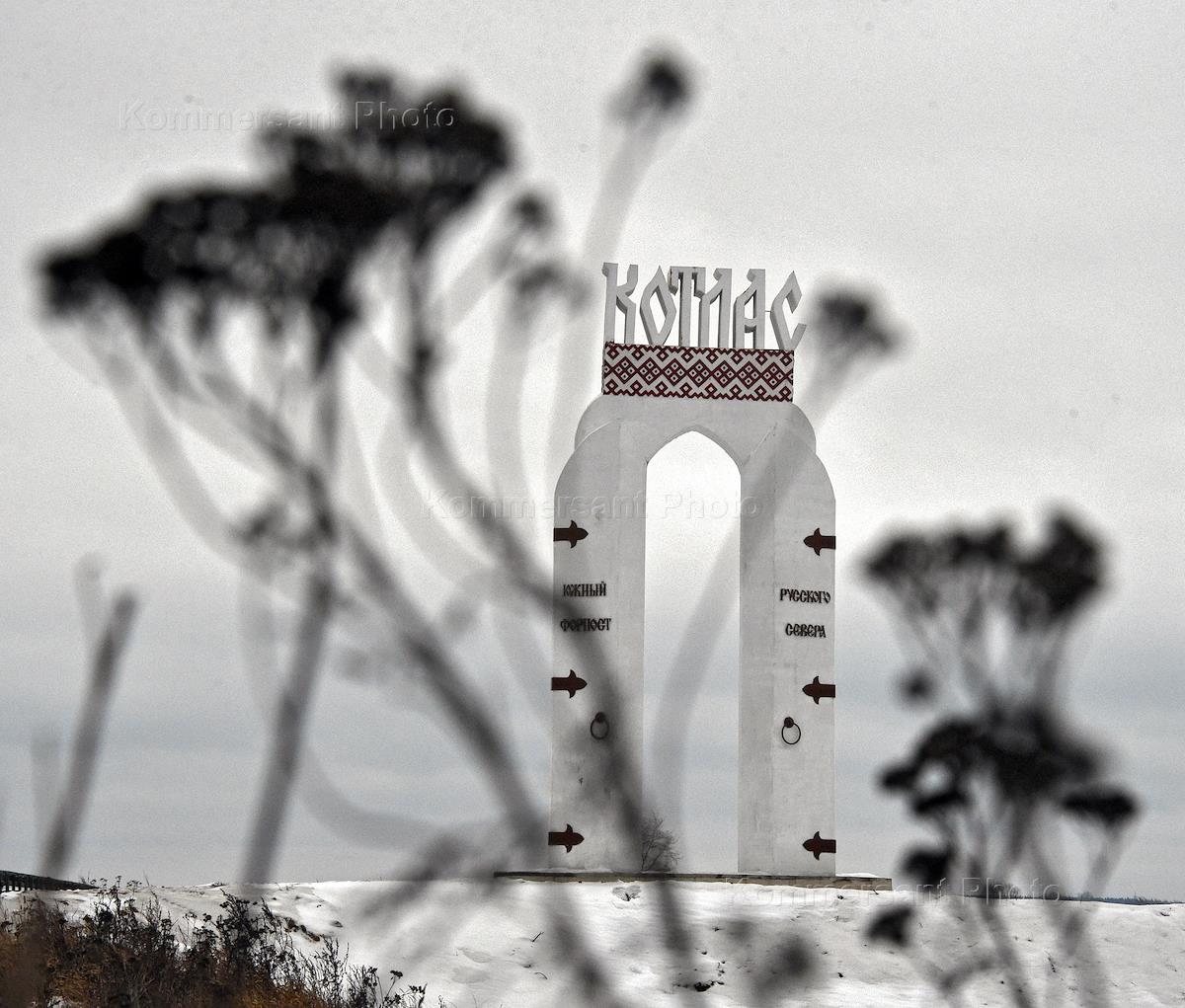 Жанровая фотография. Виды города Котлас. Скульптурная стелла "Котлас" на въезде в город.