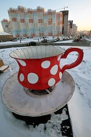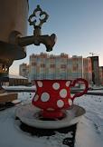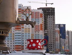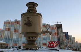 Самовар в Мытищах. Скульптура, посвященная картине Василия Перова "Чаепитие в Мытищах, близ Москвы", установлена на въезде в город.