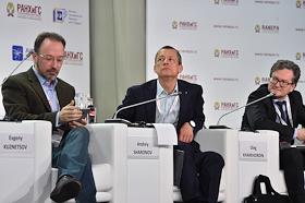 VIII Гайдаровский форум "Россия и мир: выбор приоритетов" прошел в Российской академии народного хозяйства и государственной службы при президенте России (РАНХиГС). Слева направо: заместитель генерального директора – Программный директор ОАО "Российская венчурная компания (РВК) Евгений Кузнецов, ректор Московской школы управления СКОЛКОВО Андрей Шаронов, ректор Европейского университета Санкт-Петебурга (ЕУСПБ) Олег Хархордин во время работы форума.