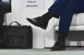 VIII Гайдаровский форум "Россия и мир: выбор приоритетов" прошел в Российской академии народного хозяйства и государственной службы при президенте России (РАНХиГС). Министр экономического развития России Максим Орешкин (справа) и председатель комитета Государственной Думы России по бюджету и налогам Андрей Макаров (слева) во время работы форума.