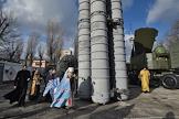 Зенитно-ракетный комплекс С-400 "Триумф" был развернут вблизи Феодосии. Церемония освящения системы С-400 "Триумф" перед заступлением на боевое дежурство зенитного ракетного полка Южного военного округа (ЮВО).