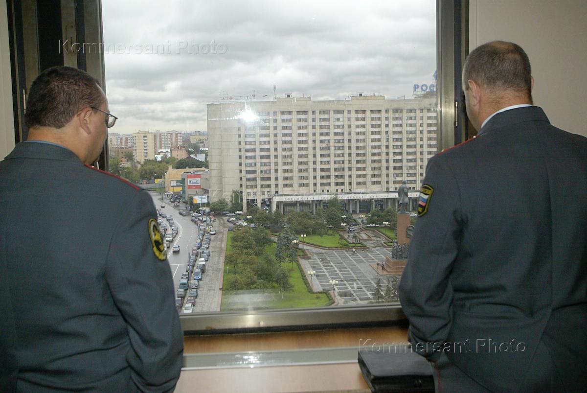 Вид на Калужскую площадь из окна здания Министерства внутренних дел России.