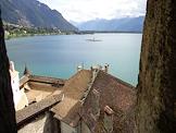 Вид на Шильонский замок на Женевском озере в Швейцарии.