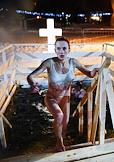 Крещенские купания в Воронцовском парке. Девушки во время фотографирования рядом с иорданью после купания.