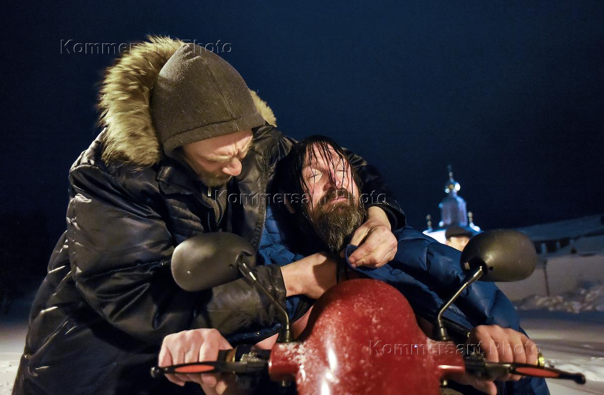 Праздник Крещения Господня. Крещенские купания в Иверском монастыре на Валдае. Сотрудники водолазно-поисковой службы во время дежурства на месте проведения крещенских купаний.