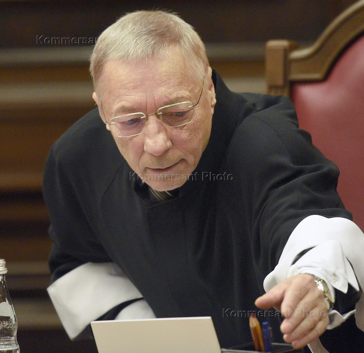 Конституционный Суд России в открытом заседании провозгласил решение по вопросу о возможности исполнения в соответствии с Конституцией России постановления Европейского Суда по правам человека от 31 июля 2014 года по делу "ОАО "Нефтяная компания "Юкос" против России". Судья Конституционного суда Александр Бойцов во время заседания.