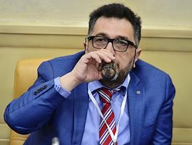 Всероссийский форум "Территория бизнеса – территория жизни" прошел в Общественной палате России. Президент Дома моды HENDERSON Рубен Арутюнян во время работы форума.