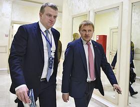 Всероссийский форум "Территория бизнеса – территория жизни" прошел в Общественной палате России. Президент общественной организации "Опора России" Александр Калинин (справа) во время работы форума.