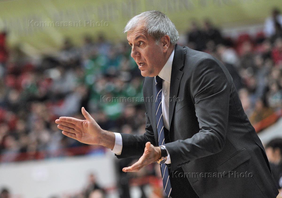 Евролига по баскетболу. Матч между командами УНИКС (Россия, Казань) - "Фенербахче" (Турция, Стамбул). Главный тренер БК "Фенербахче" Желько Обрадович во время матча.