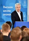 Мэр Москвы Сергей Собянин во время выступления с лекцией в Национальном исследовательском университете "Высшая школа экономики".