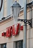 Жанровая фотография. Вывеска кафе "Му-Му". Сосульки на уличном фонаре.