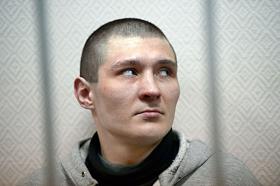 Житель Астрахани Максим Панфилов, обвиняемый по делу о массовых беспорядках на Болотной площади в Москве 6 мая 2012 года, во время заседания Замоскворецкого районного суда.