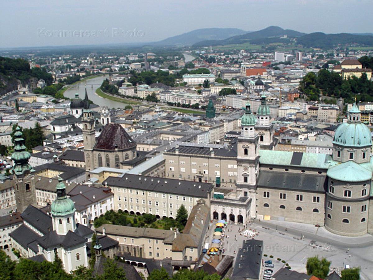 Вид на крепость Зальцбург, находящуюся на горе Нонберг.