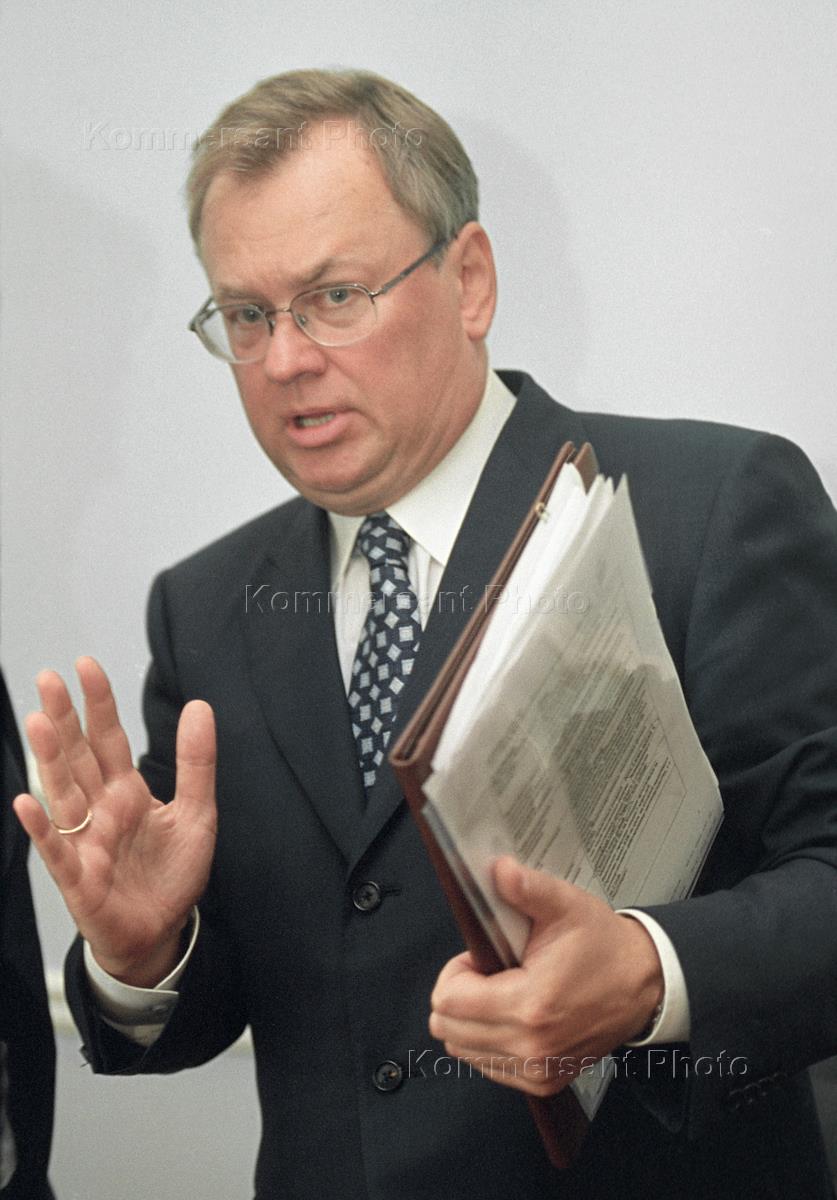 Президент, председатель правления Внешторгбанка Андрей Костин на церемонии подписания договора между Пенсионным фондом и объединенной депозитарной компанией - победителем конкурса по отбору спецдепозитария, который будет обеспечивать добросовестную работу управляющих компаний по инвестированию пенсионных накоплений граждан. Церемония состоялась в здании Пенсионного фонда.