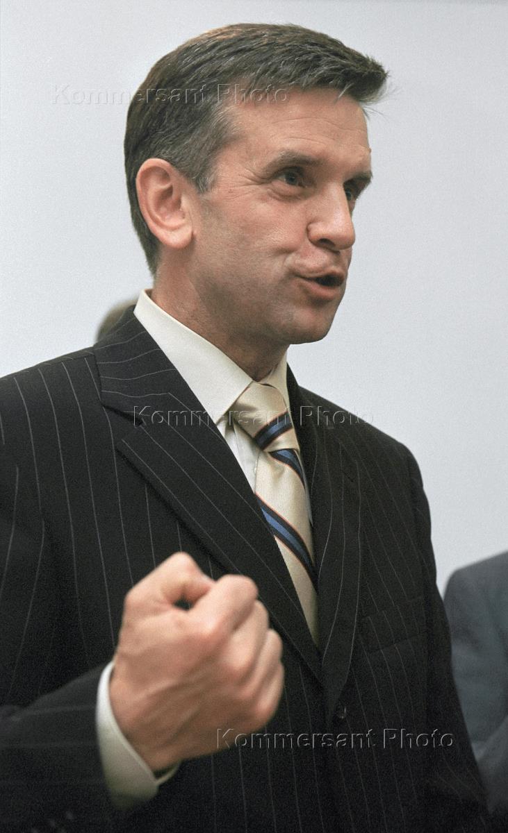 Председатель правления Пенсионного фонда России Михаил Зурабов на церемонии подписания договора между Пенсионным фондом и объединенной депозитарной компанией - победителем конкурса по отбору спецдепозитария, который будет обеспечивать добросовестную работу управляющих компаний по инвестированию пенсионных накоплений граждан. Церемония состоялась в здании Пенсионного фонда.