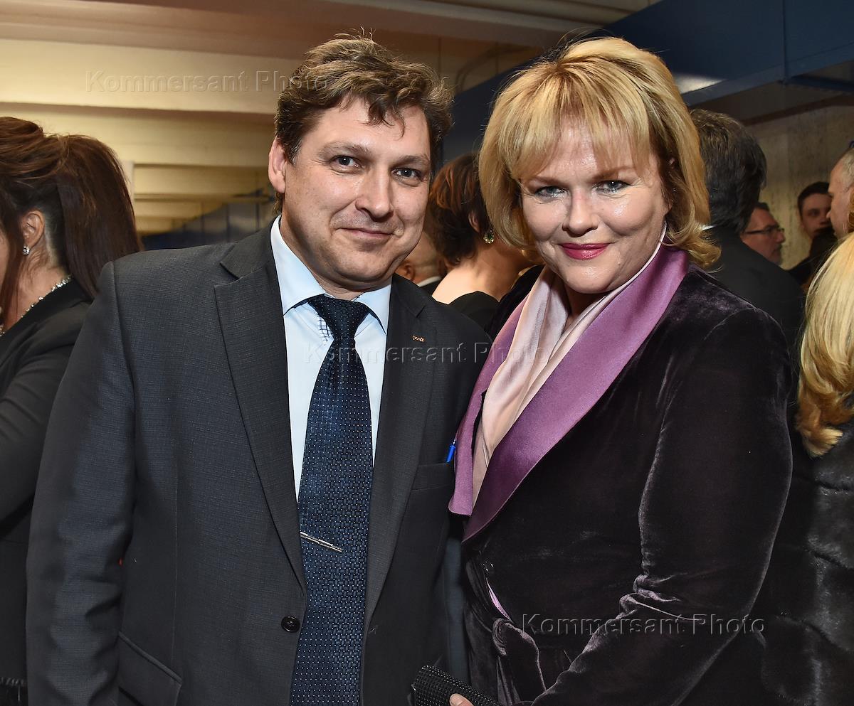 XV церемония вручения главной профессиональной кинопремии "Золотой орел" прошла на киностудии "Мосфильм". Продюсер, режиссер и телеведущий Алексей Пиманов (слева) и актриса Ольга Погодина (в центре) во время церемонии.