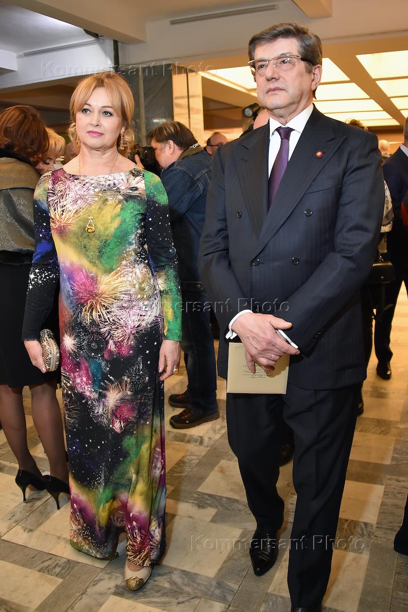 XV церемония вручения главной профессиональной кинопремии "Золотой орел" прошла на киностудии "Мосфильм". Первый заместитель председателя Государственной думы России Александр Жуков (в центре) с супругой Екатериной (слева) во время церемонии.