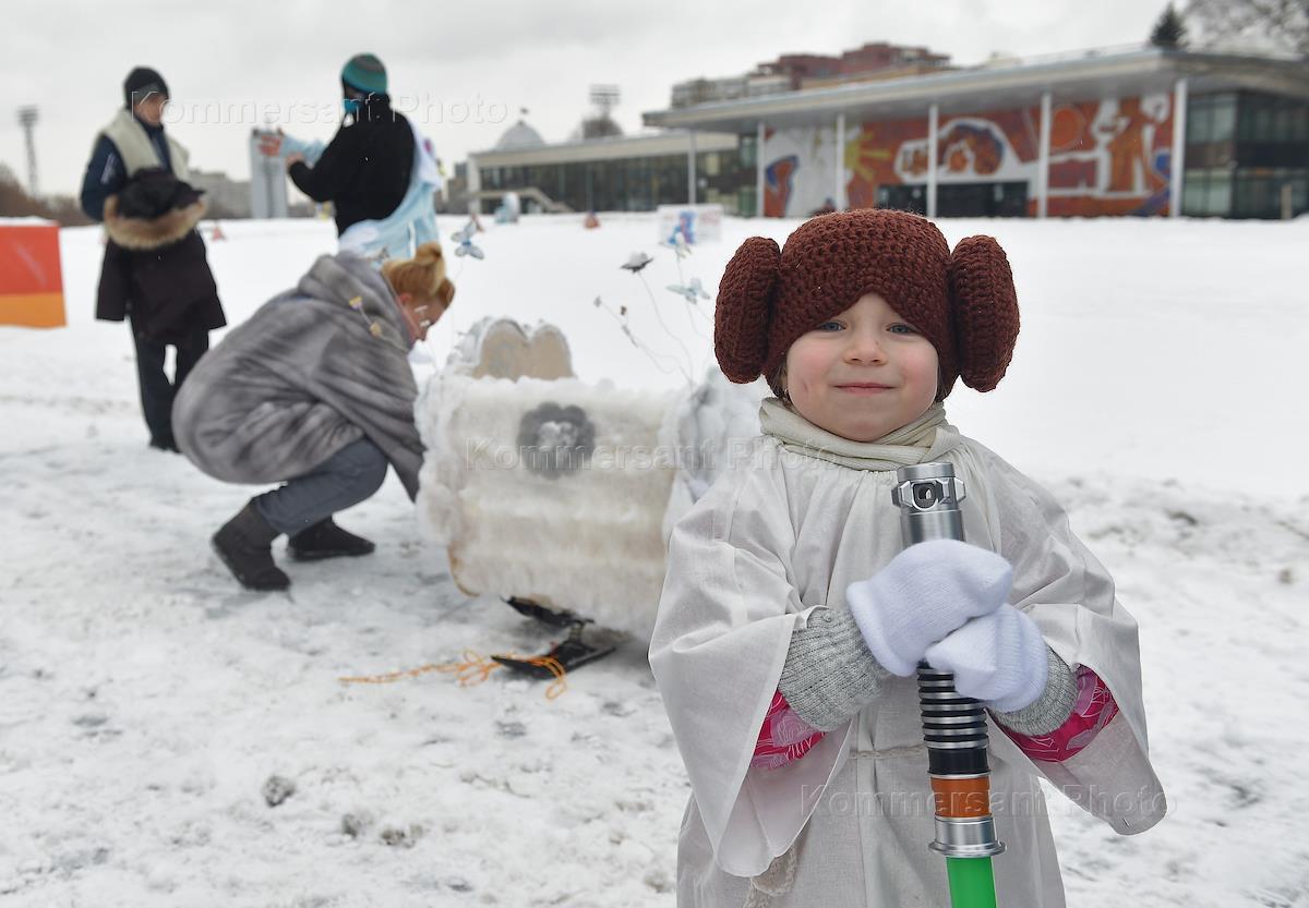 Соревнования на самодельных санях "Новаторские гонки" прошли на территории Московского дворца пионеров на Воробьевых горах. Телеведущая Алла Михеева во время соревнований.