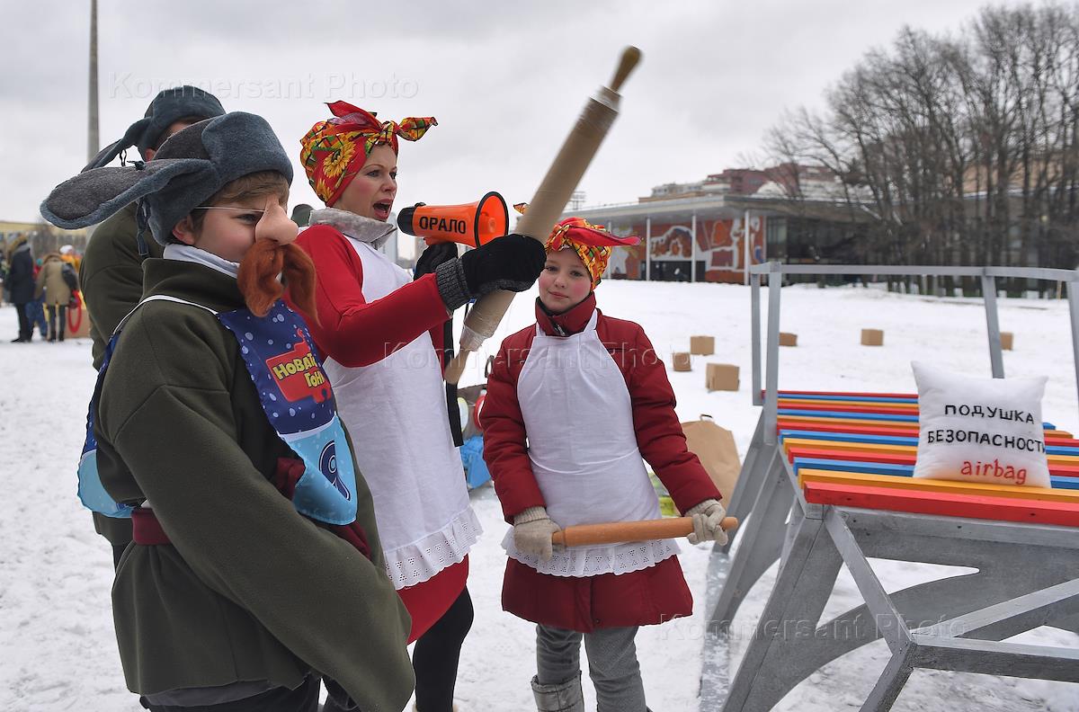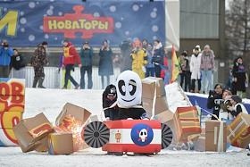 Соревнования на самодельных санях "Новаторские гонки" прошли на территории Московского дворца пионеров на Воробьевых горах.