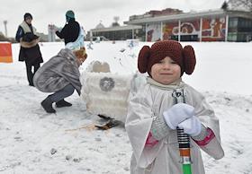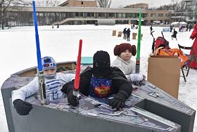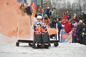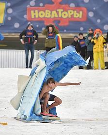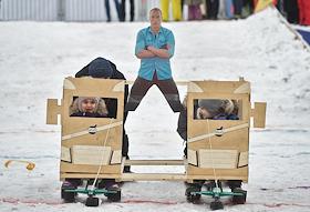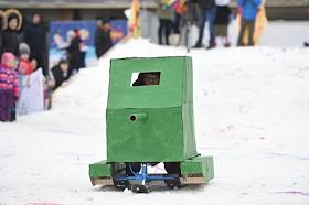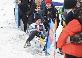 Соревнования на самодельных санях "Новаторские гонки" прошли на территории Московского Дворца пионеров на Воробьевых горах.