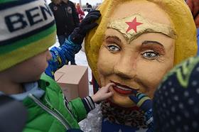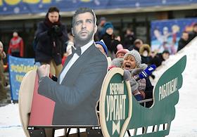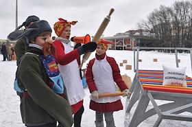 Соревнования на самодельных санях "Новаторские гонки" прошли на территории Московского дворца пионеров на Воробьевых горах. Телеведущая Алла Михеева во время соревнований.