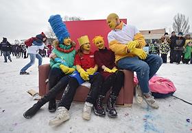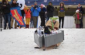 Соревнования на самодельных санях "Новаторские гонки" прошли на территории Московского дворца пионеров на Воробьевых горах. Телеведущая Алла Михеева во время соревнований.