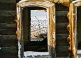 Село Серебрянка. Жанровая фотография. Окна заброшенного деревянного дома.