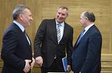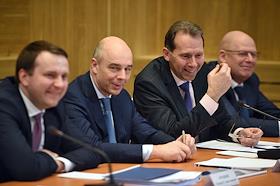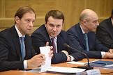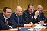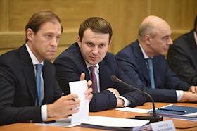 Рабочая поездка председателя правительства России Дмитрия Медведева в Киров. Слева направо: министр промышленности и торговли России Денис Мантуров, министр экономического развития России Максим Орешкин и министр финансов России Антон Силуанов перед началом совещания о развитии производственных мощностей организаций оборонно-промышленного комплекса (ОПК). Совещание прошло на площадке АО "Кировское машиностроительное предприятие" (концерн "Алмаз - Антей").