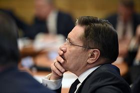 Рабочая поездка председателя правительства России Дмитрия Медведева в Киров. Председатель Совета директоров "Алмаз-Антея" Михаил Фрадков перед началом совещания о развитии производственных мощностей организаций оборонно-промышленного комплекса (ОПК). Совещание прошло на площадке АО "Кировское машиностроительное предприятие" (концерн "Алмаз - Антей").