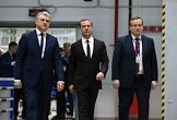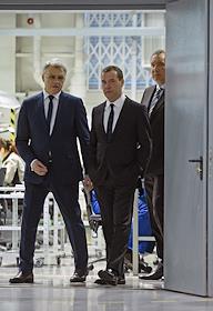 Рабочая поездка председателя правительства России Дмитрия Медведева в Киров. Слева направо: генеральный директор АО "Концерн ВКО "Алмаз-Антей" Ян Новиков, председатель правительства России Дмитрий Медведев и генеральный директор КМП Эдуард Носков во время посещения предприятия АО "Кировское машиностроительное предприятие" (входит в концерн воздушно-космической обороны "Алмаз - Антей").