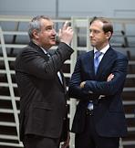 Рабочая поездка председателя правительства России Дмитрия Медведева в Киров. Министр финансов России Антон Силуанов (слева) и директор Федеральной службы России по оборонному заказу Александр Потапов (в центре) перед началом совещания о развитии производственных мощностей организаций оборонно-промышленного комплекса (ОПК). Совещание прошло на площадке АО "Кировское машиностроительное предприятие" (концерн "Алмаз - Антей").