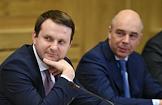 Рабочая поездка председателя правительства России Дмитрия Медведева в Киров. Министр экономического развития России Максим Орешкин (слева) и министр финансов России Антон Силуанов (справа) перед началом совещания о развитии производственных мощностей организаций оборонно-промышленного комплекса (ОПК). Совещание прошло на площадке АО "Кировское машиностроительное предприятие" (концерн "Алмаз - Антей").