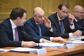 Рабочая поездка председателя правительства России Дмитрия Медведева в Киров. Слева направо: министр промышленности и торговли России Денис Мантуров, министр экономического развития России Максим Орешкин и министр финансов России Антон Силуанов перед началом совещания о развитии производственных мощностей организаций оборонно-промышленного комплекса (ОПК). Совещание прошло на площадке АО "Кировское машиностроительное предприятие" (концерн "Алмаз - Антей").