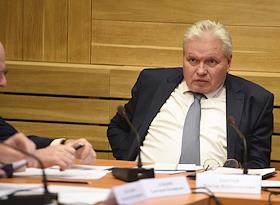 Рабочая поездка председателя правительства России Дмитрия Медведева в Киров. Заместитель председателя Военно-промышленной комиссии (ВПК) при правительстве России Иван Харченко перед началом совещания о развитии производственных мощностей организаций оборонно-промышленного комплекса (ОПК). Совещание прошло на площадке АО "Кировское машиностроительное предприятие" (концерн "Алмаз - Антей").