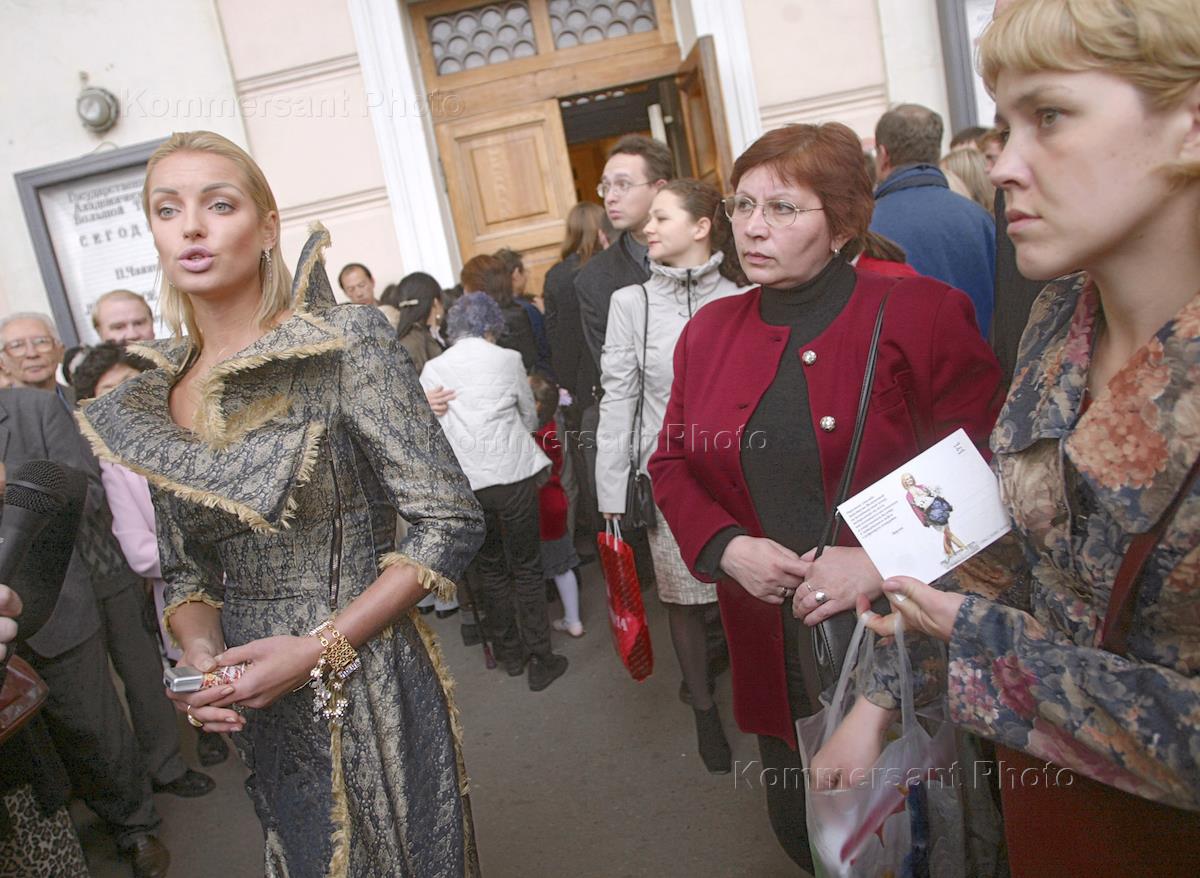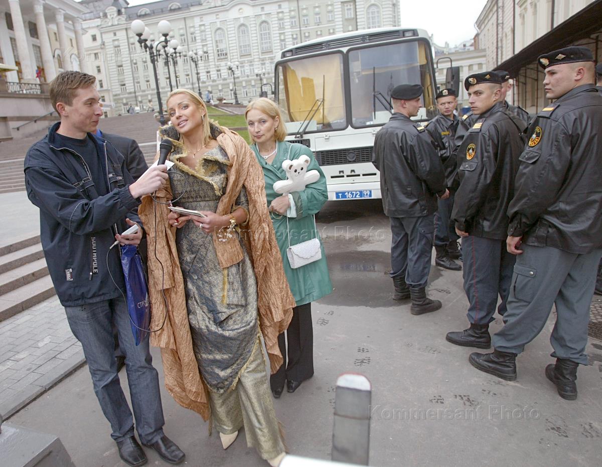 Балерина Государственного академического Большого театра (ГАБТ) Анастасия Волочкова (слева) во время митинга своих поклонников, которые протестовали против увольнения балерины из труппы Большого театра. Митинг состоялся у стен ГАБТ.