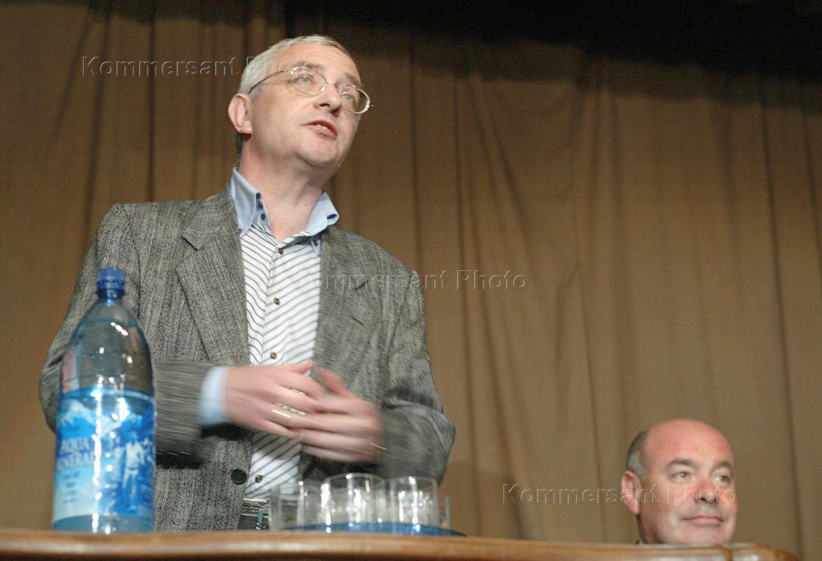 Министр культуры России Михаил Швыдкой на (справа) церемонии представления коллективу Государственного центрального театрального музея (ГЦТМ) им.А.А.Бахрушина нового директора. Церемония состоялась в лектории ГЦТМ.